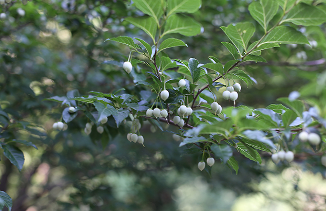 えごのき 萵苣の木(ちしゃのき)轆轤木(ろくろぎ)Styrax japonica takashi tanabe / 2014年8月23日 [vol.528/2014年8月23日] エゴノキ科/エゴノキ属/落葉小高木/樹髙:10mはど/花:5〜6月、実:7月 実の皮は有毒で魚をマヒさせるような毒があり食べたときにのどを刺激してエグイ味がすることからこの名がついた。昔、この木の白い材は固く粘りがあるので、ロクロで細工し、おもちゃなどを作ったところから、轆轤木(ろくろぎ)とも言う。初夏の頃、桜に似た、白かピンク色の花をいっぱい咲かせる。