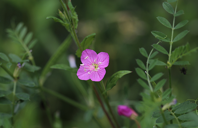 あかばなゆうげしょう(赤花夕化粧)Oenothera rosea takashi tanabe / 2015年5月19日 [vol.797/2015年5月19日] アカバナ科/マツヨイグサ属/多年草/草丈20 ~ 60cm /開花5~9月 北アメリカ南部原産。明治時代に観賞用として導入される。夕方に花を咲かせるのが名の由来だが、昼間でも結構咲いている。別名ユウゲショウとも呼ばれるが、同名のオシロイバナと区別するため、アカバナがついた。白い花をつける物もあるが、白花夕化粧とは言わないらしい。赤花夕化粧の白種とでも言えば良いのか? ▼ indicated big(play slideshow)