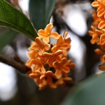 きんもくせい(金木犀)Osmanthus fragrans var. aurantiacus takashi tanabe / 2015年10月30日 [vol.961/2015年10月30日] モクセイ科/モクセイ属/常緑小高木/3〜6 m/開花:10月 中国南部原産。江戸時代に渡来した。おもに庭木として観賞用に植えられている。秋に小さいオレンジ色の花を無数に咲かせ、芳香を放つ。雌雄異株であるが、日本ではなぜか雄株しか入っていないので結実しない。雄しべが2本と不完全な雌しべを持つ。 ▼ indicated big(play slideshow)