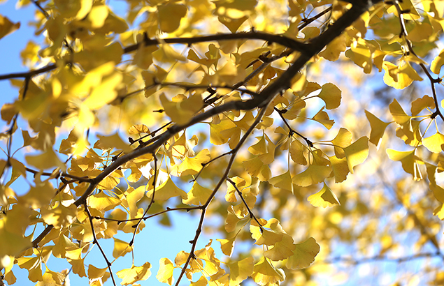こうよう(紅葉)The autumnal leaves takashi tanabe / 2014年11月29日 [vol.626/2014年11月29日] 紅葉というと、イロハモミジが一般的ですが、桜の紅葉、ツタ、銀杏の紅葉も美しいのではないでしょうか。逆光の透過光で見るイロハモミジは、絵の具の色にはないような、鮮やかな赤い輝きを見せてくれます。それに比べると、桜やツタの紅葉は、地味かも知れませんがモミジとは違った。紅葉の趣が楽しめるのではないでしょうか。銀杏の紅葉は明るくて気が晴れ晴れします。